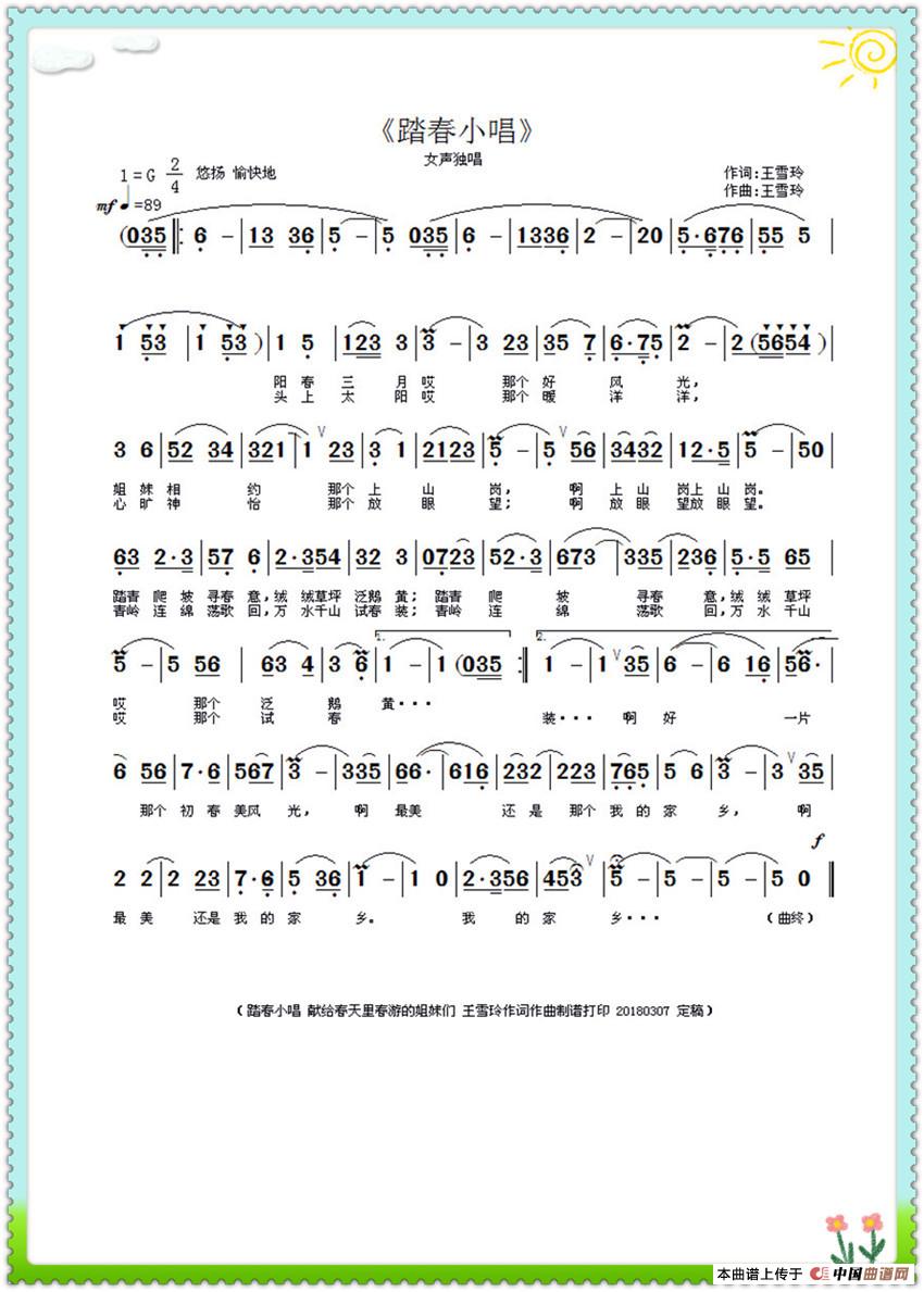 (王雪玲·朦胧 词曲编唱录混 春季踏青小品歌曲 作于2018-03-07)2018-05-01 重新补传 中国曲谱网