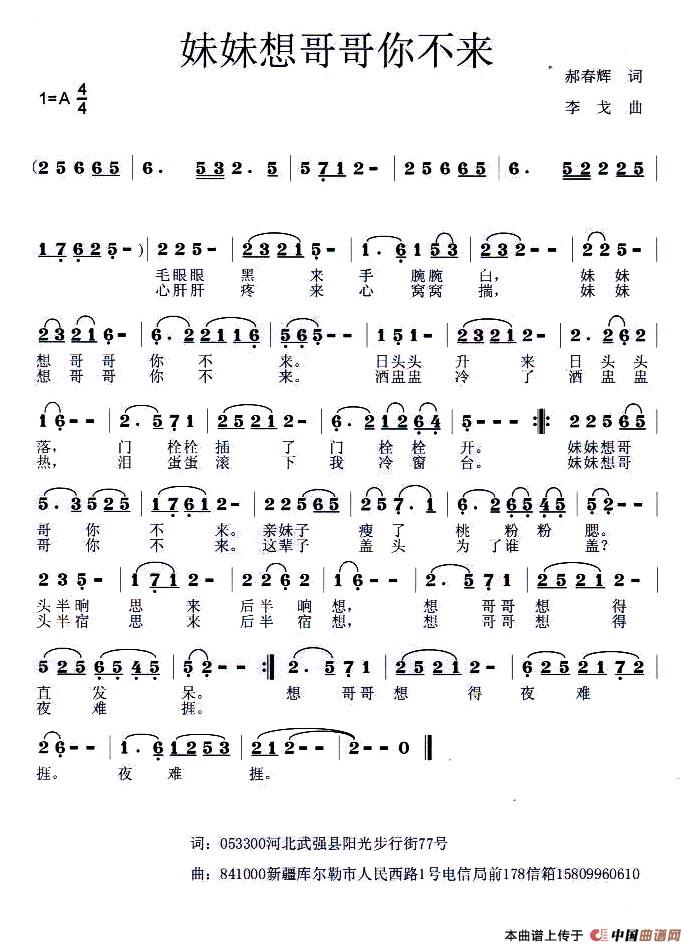 关于《妹妹想哥哥你不来》曲谱的评论
