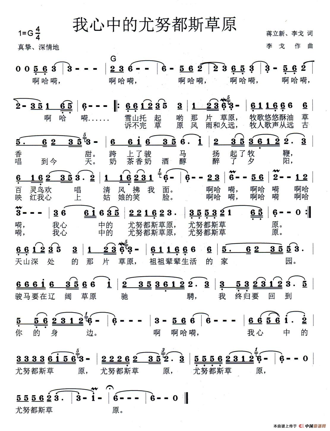 关于《我心中的尤努都斯草原》曲谱的评论