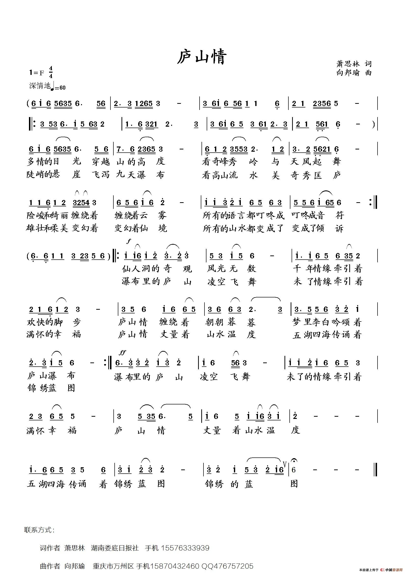 瀑布里的庐山凌空飞舞未了的情缘牵引着满怀幸福庐山情丈量着山水温度五湖四海传诵着锦绣蓝图.