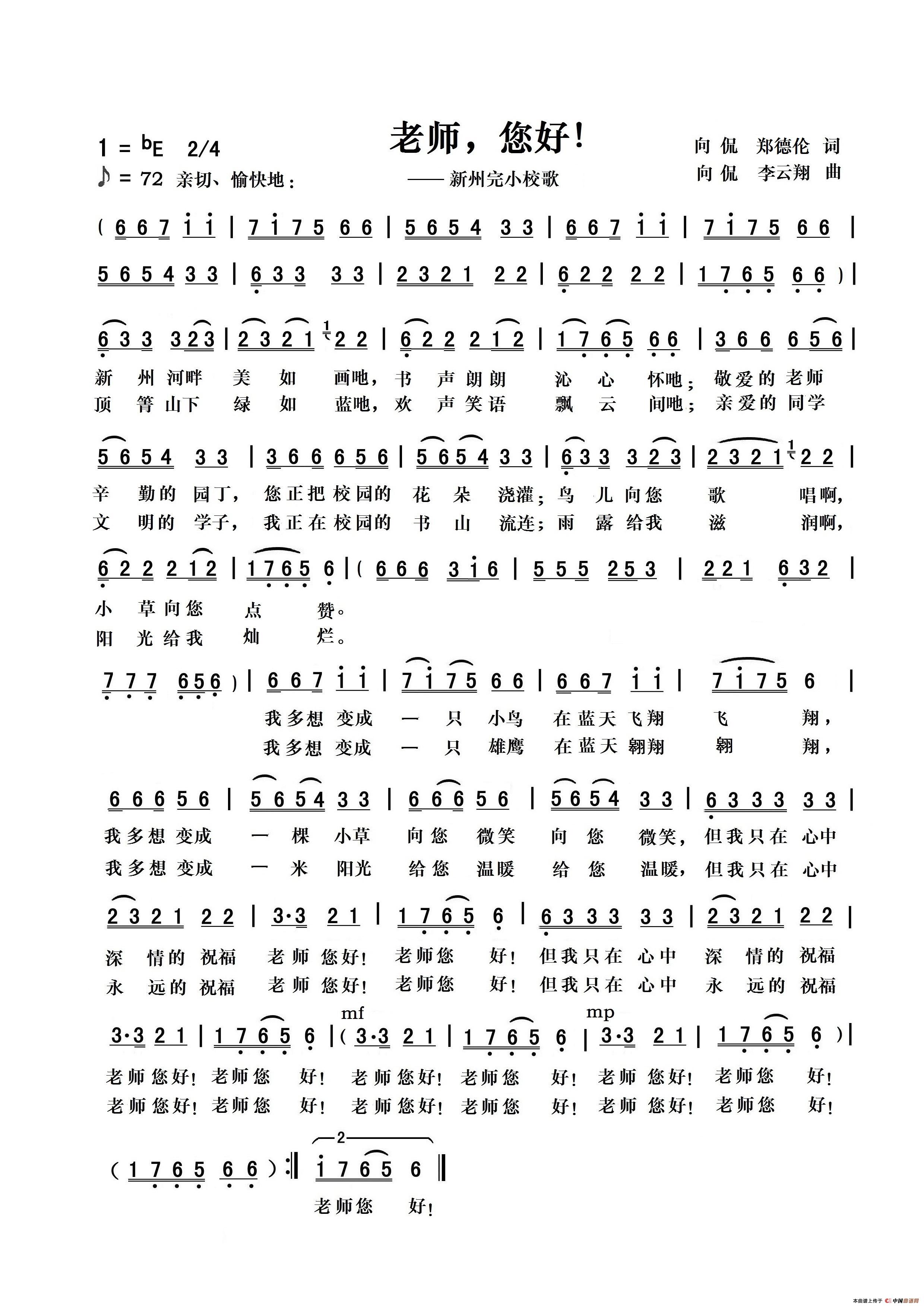 老师你好(向侃郑德伦词 向侃 李云翔曲)(1)_原文件名:老师,您好!(歌谱;向侃词曲).jpg