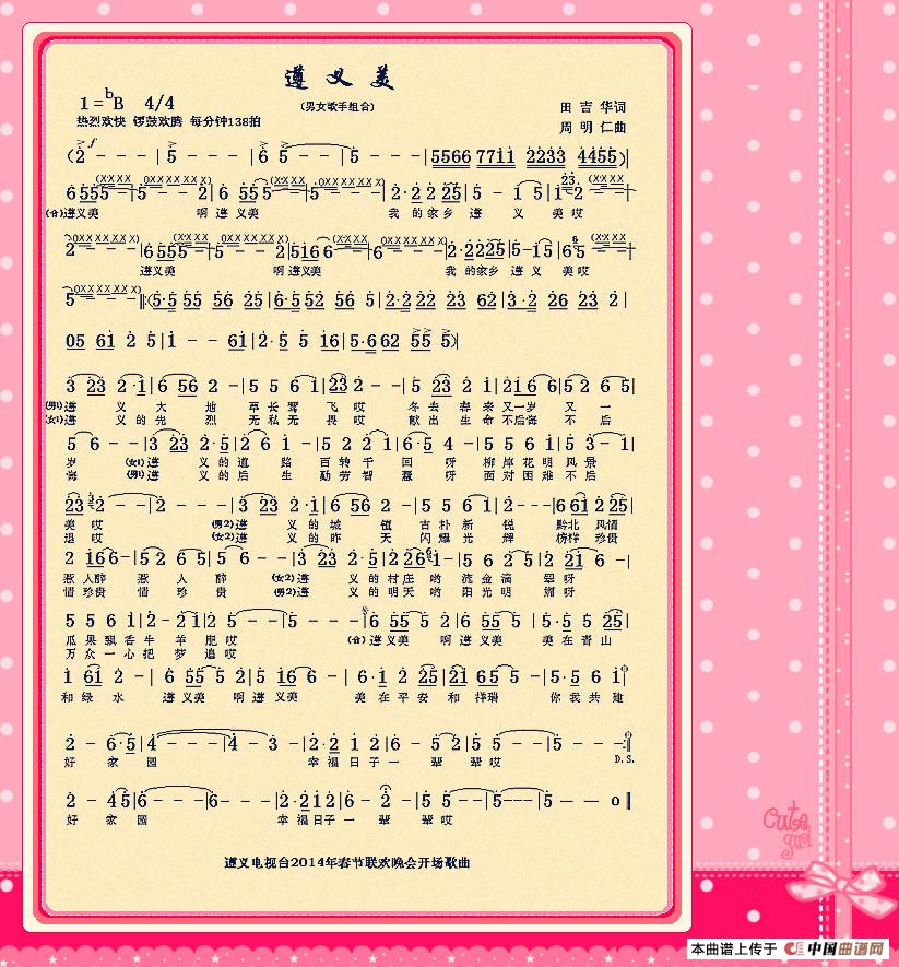 关于《遵义美》曲谱的评论
