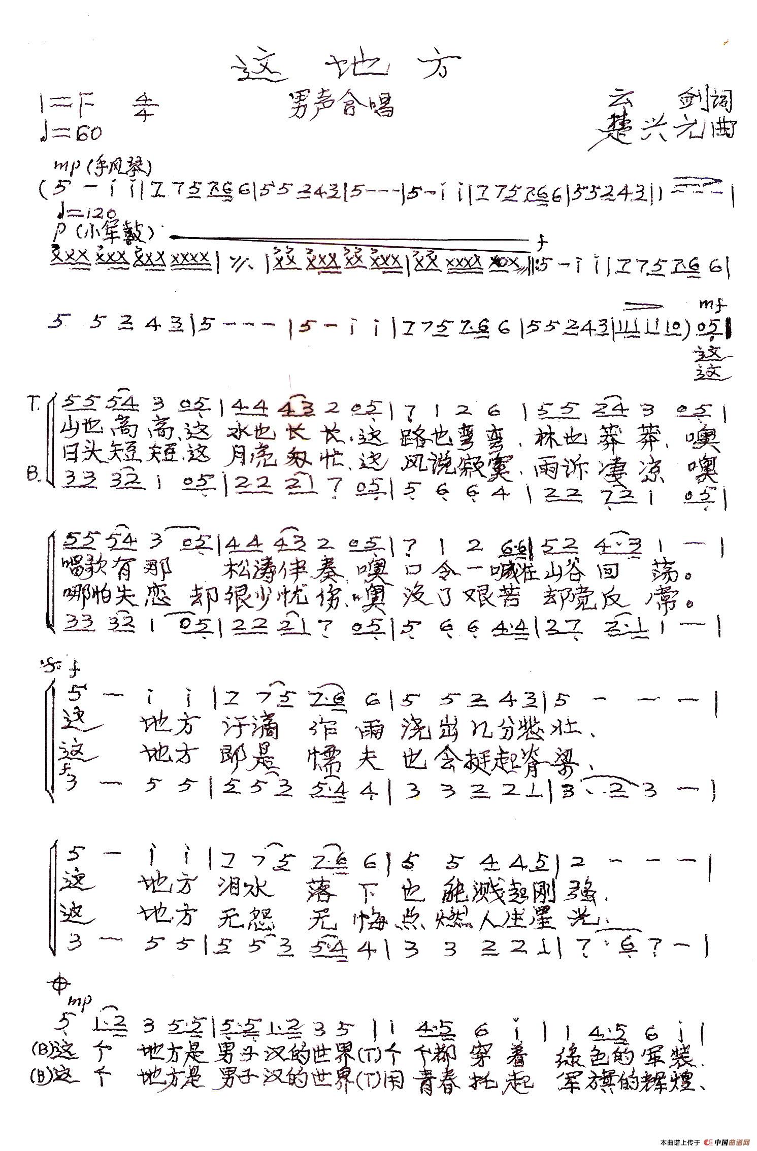 这地方(云剑词 楚兴元曲、男声合唱)(1)_原文件名:《这地方》男声合唱简谱01.jpg