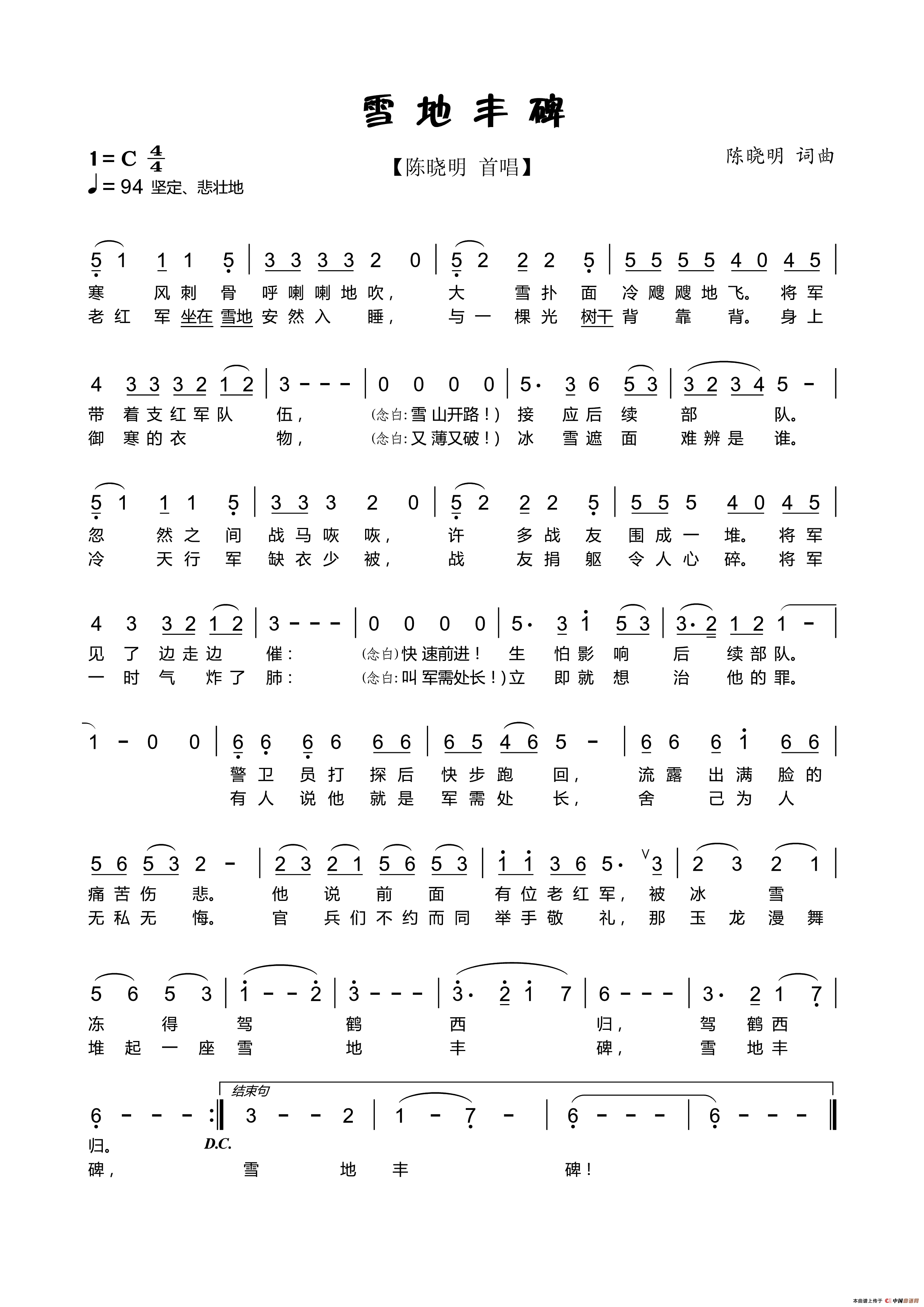 关于《雪地丰碑》曲谱的评论