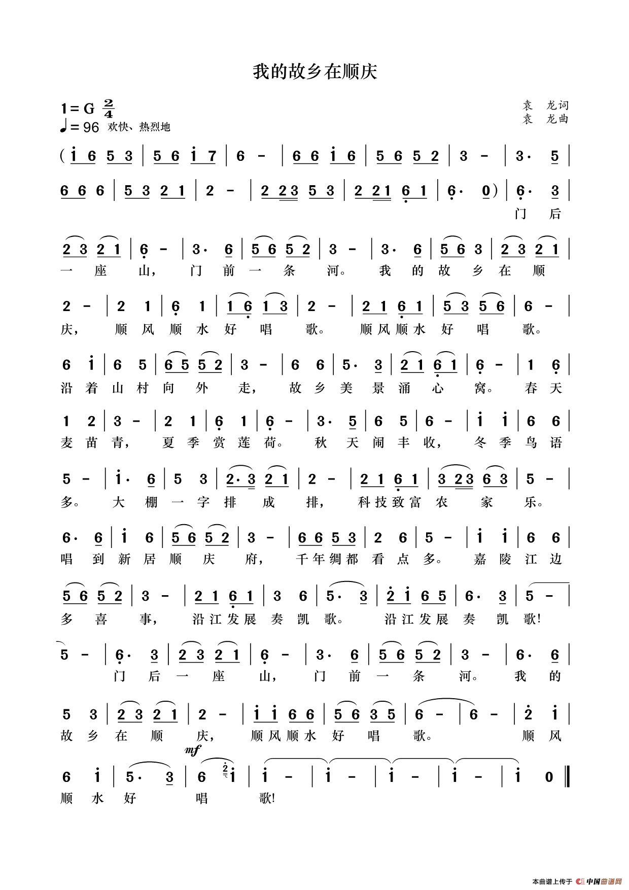 美丽的顺庆,蓝蓝的嘉陵江。我的故乡在顺庆,千年绸都美名扬。通过歌颂故乡顺庆区从新农村建设到城乡一体化的发展,激发起人们爱故乡,爱顺庆区的热情!