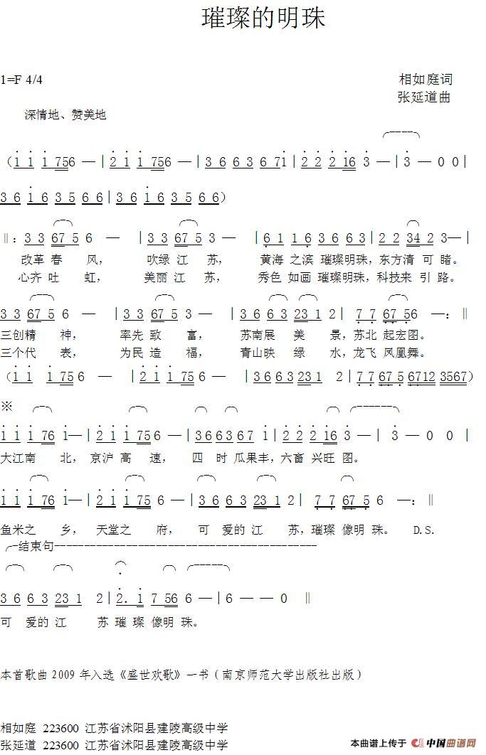 关于《璀璨的明珠(相如庭词张延道曲)》曲谱的评论