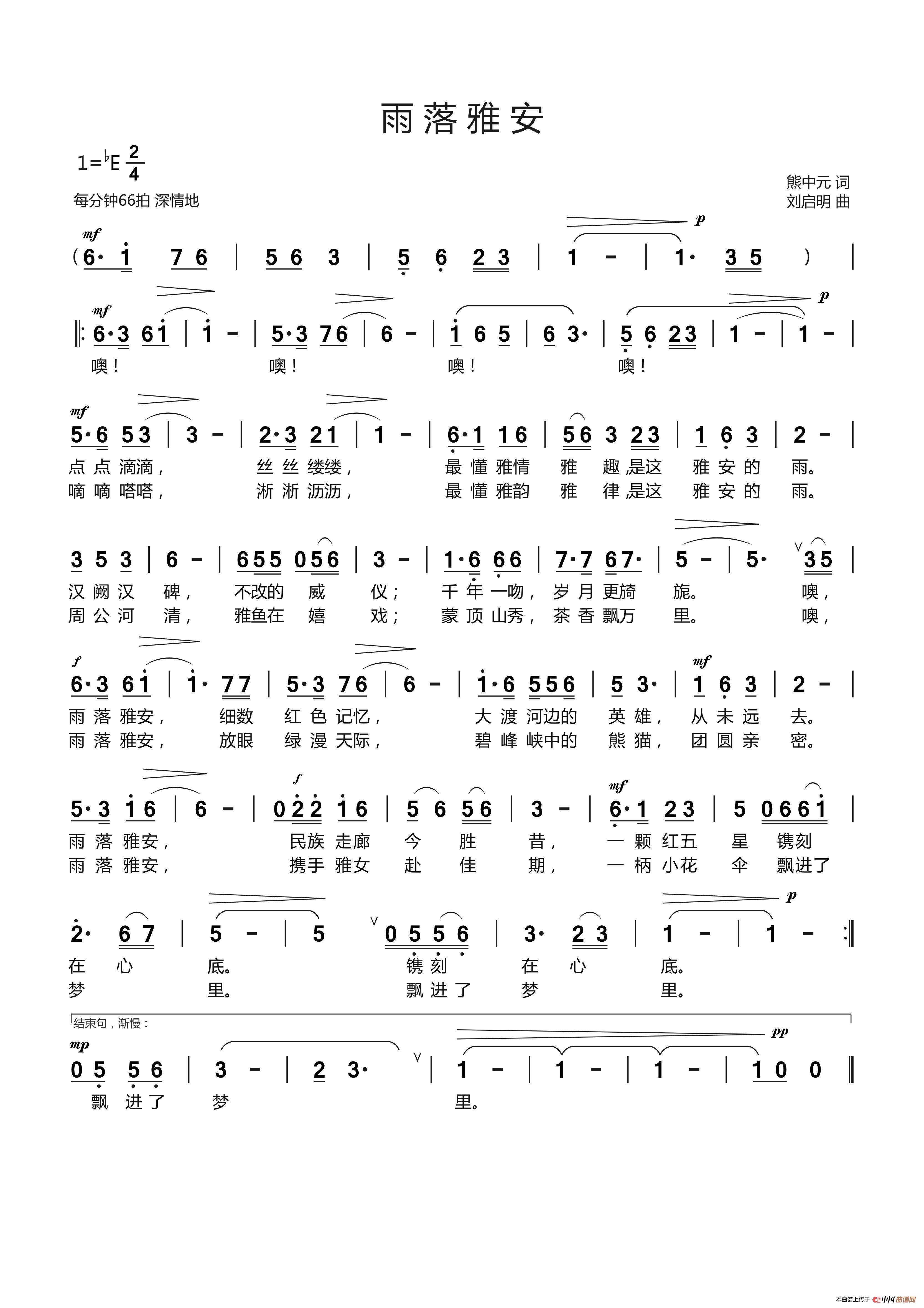 关于《雨落雅安(熊中元词 刘启明曲)》曲谱的评论