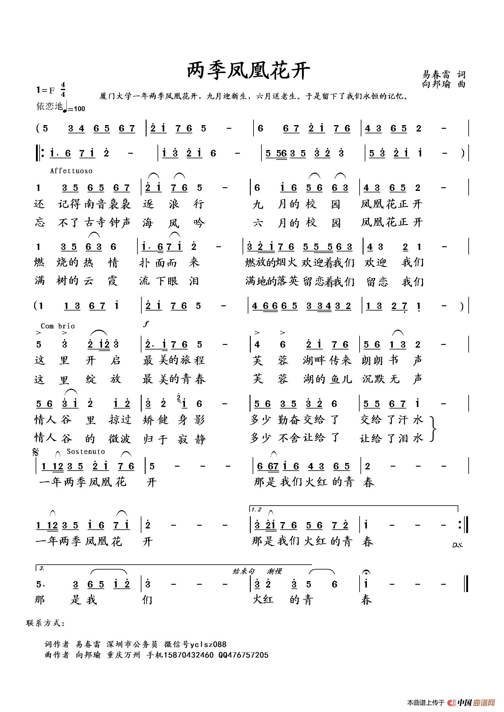 《两季凤凰花开》文本歌词