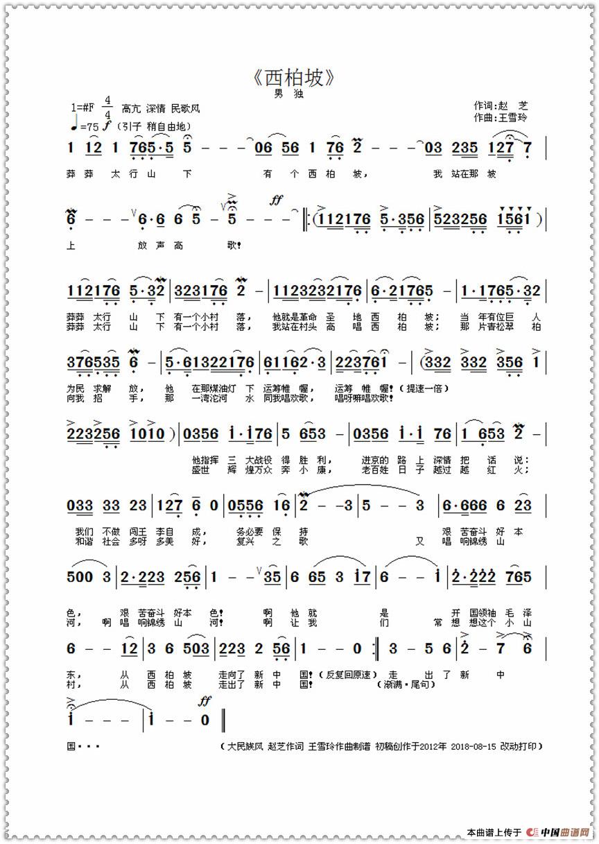 《西柏坡》这是一首旧岁的参赛合作歌曲---原稿写于2012年。男声独唱 / 赵芝作词 王雪玲作曲制谱打印/原创。