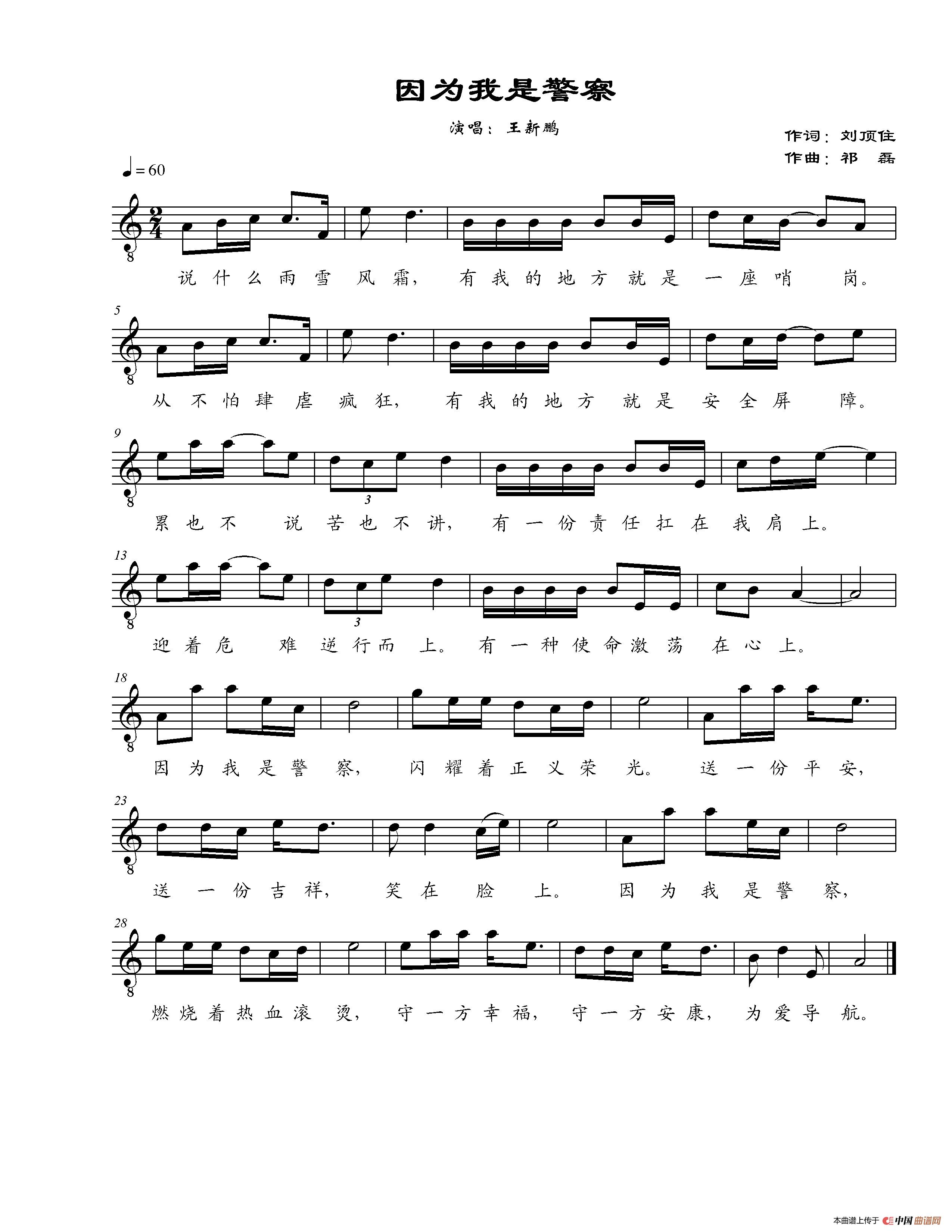 关于《因为我是警察》曲谱的评论