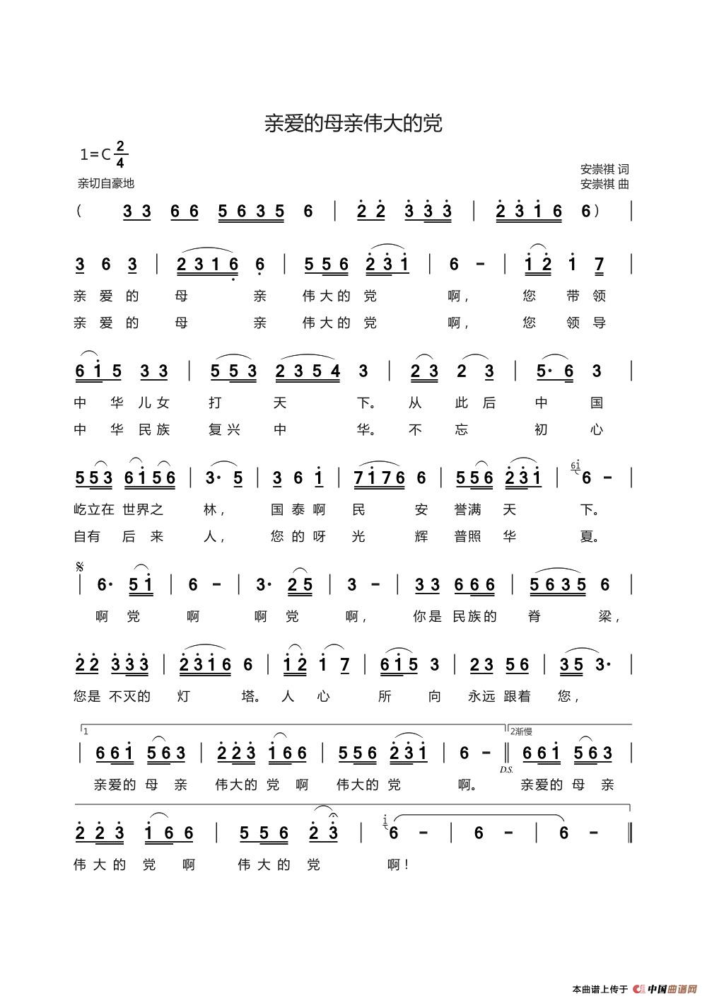 关于《亲爱的母亲伟大的党》曲谱的评论