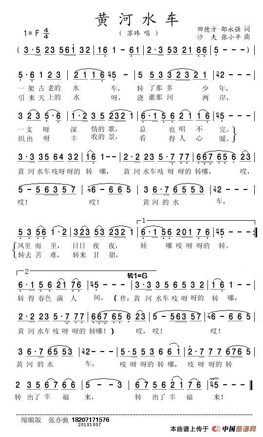 关于《黄河水车(亦弛缩编版)》曲谱的评论