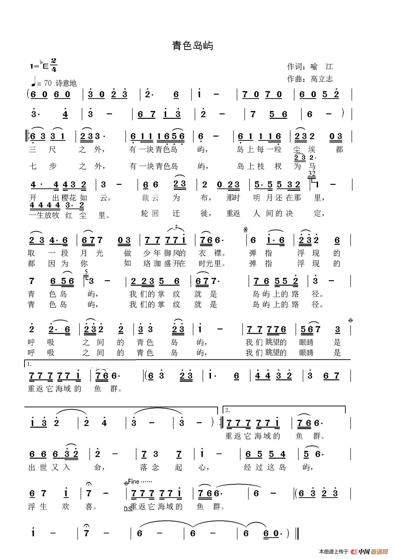 关于《青色岛屿》曲谱的评论