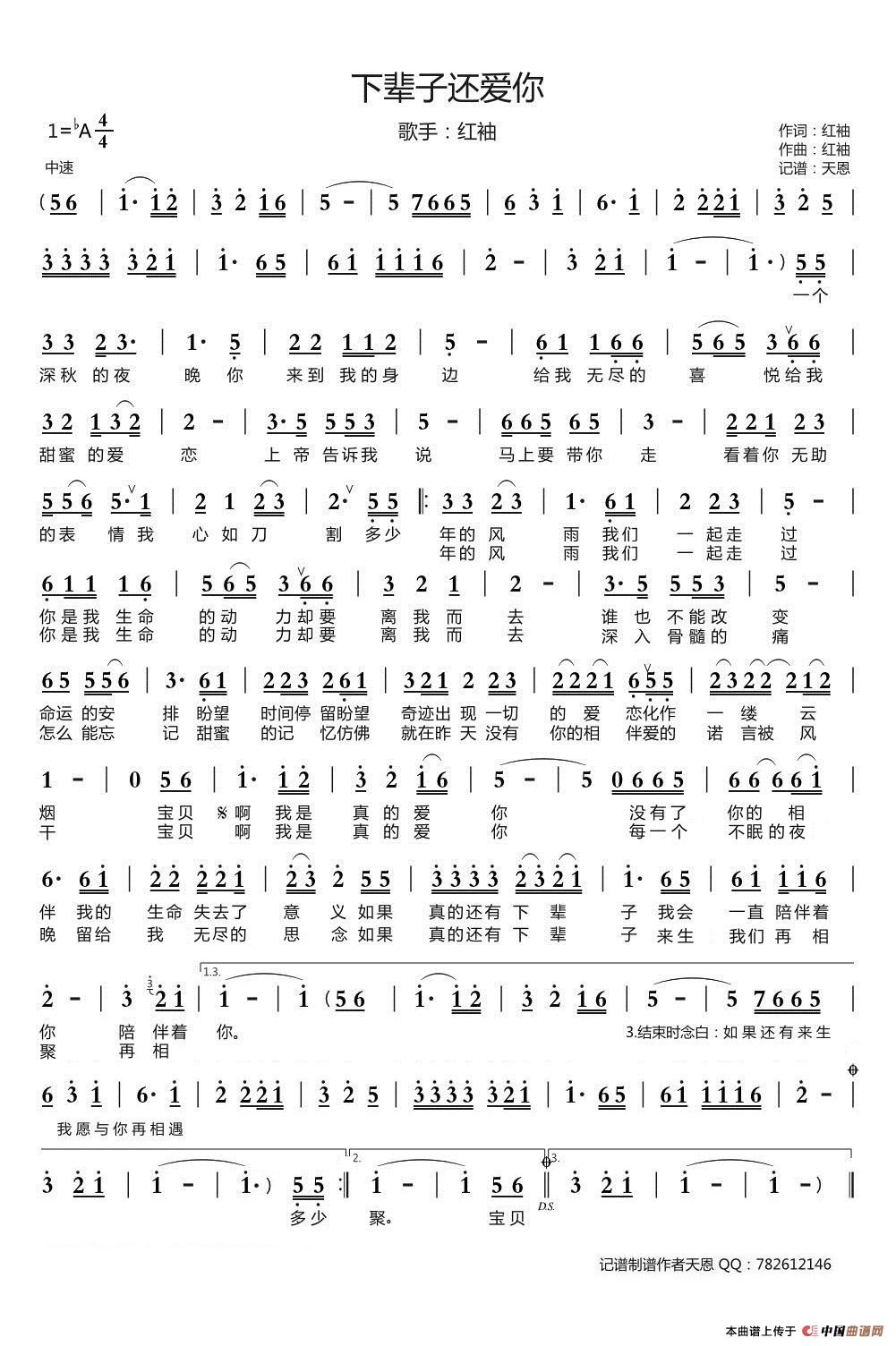 提示:在曲谱图片上单击右键,选择"图片另存为..."即可将曲谱保存到您的电脑中,打印时候可将图片插入到WORD中,调整合适大小打印即可。