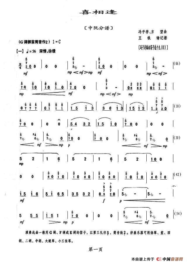 关于《喜相逢》曲谱的评论