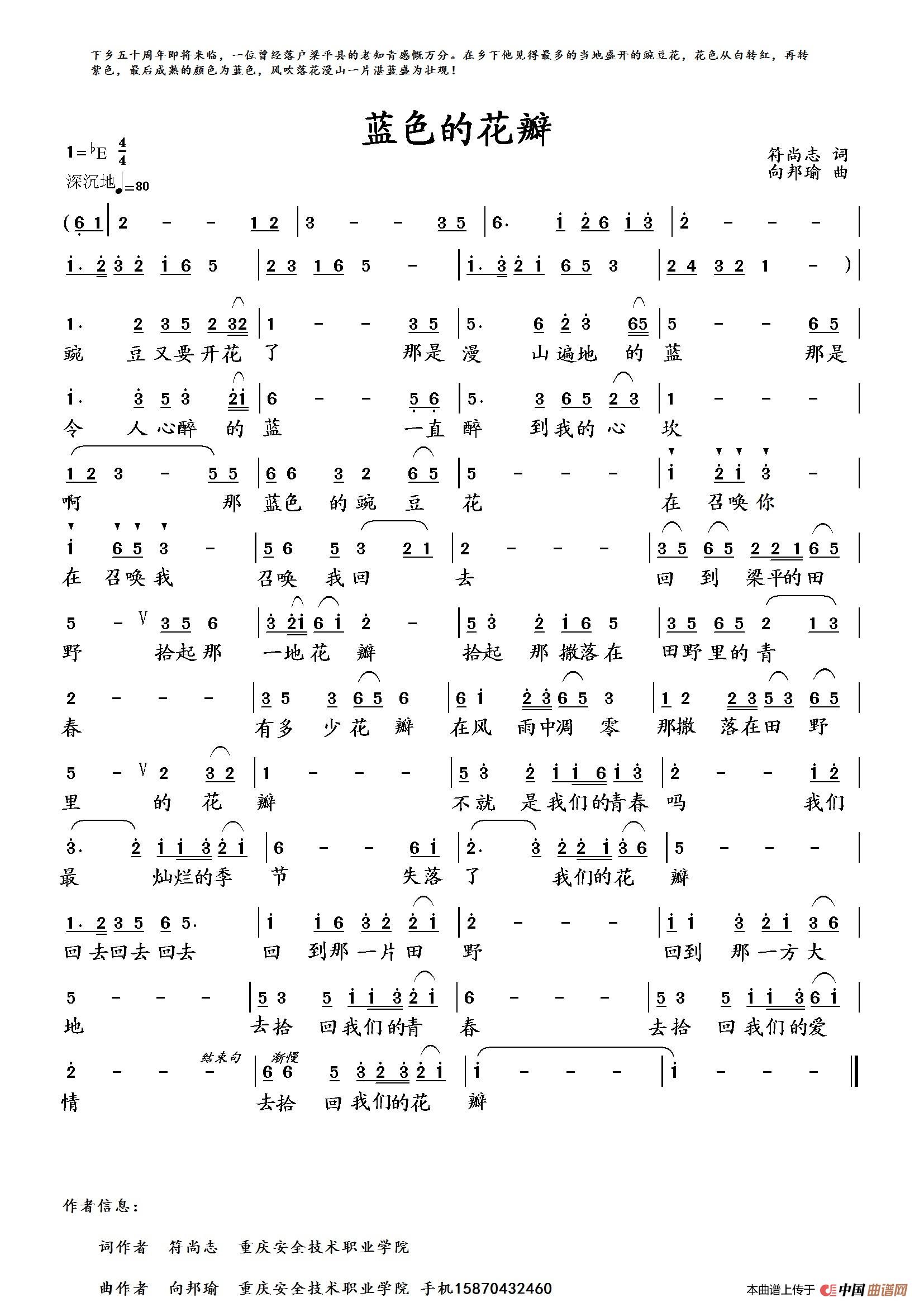 《蓝色的花瓣》文本歌词