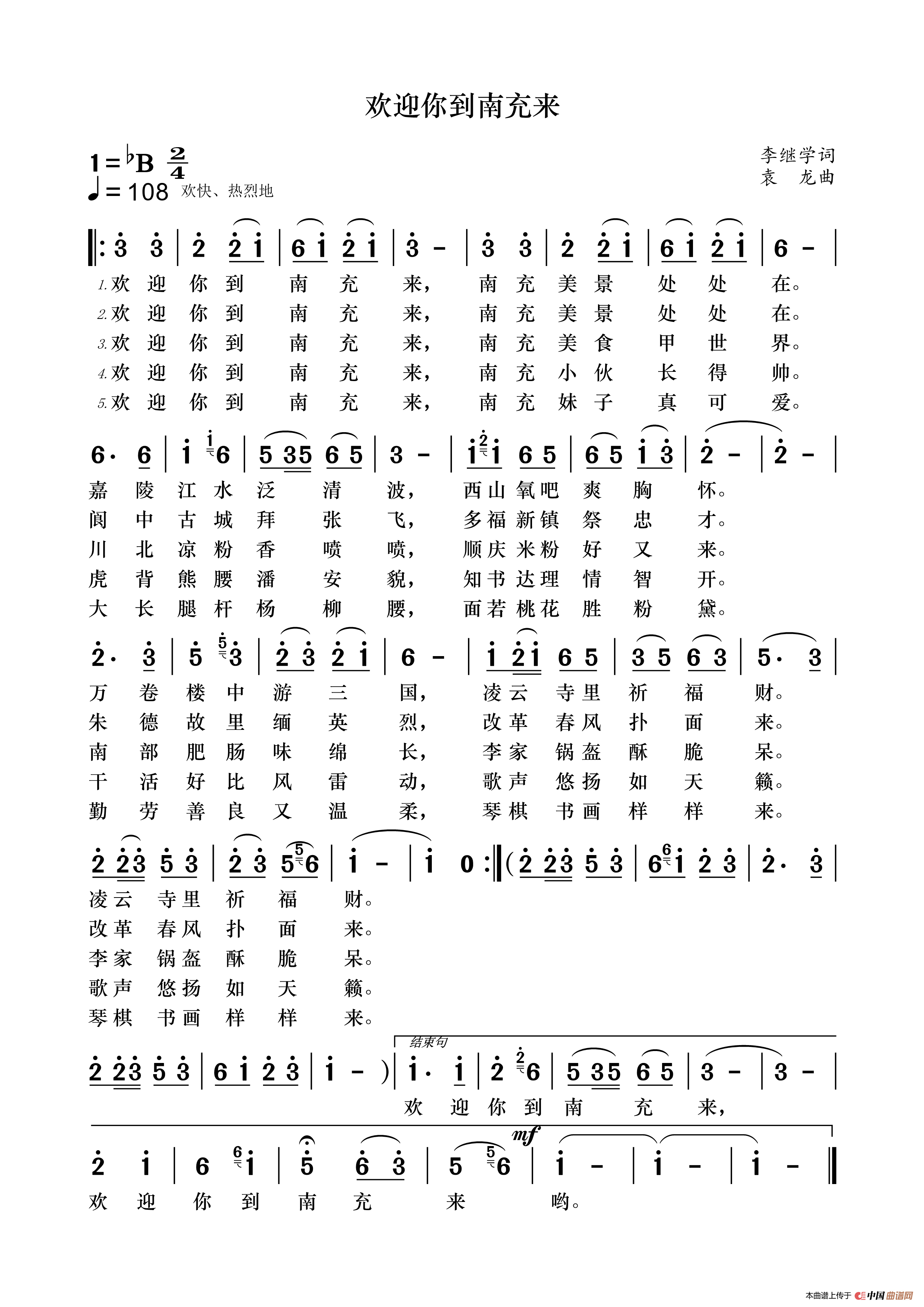 《欢迎你到南充来》文本歌词