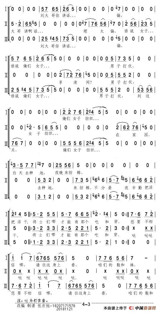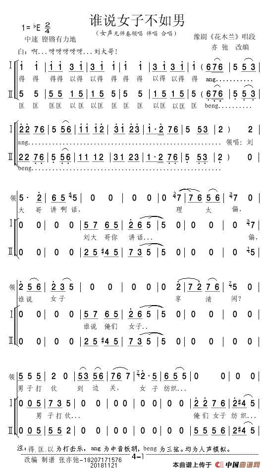 关于《谁说女子不如男(亦弛改编)》曲谱的评论