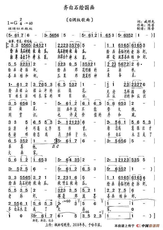 齐白石绘国画(G调版歌曲)