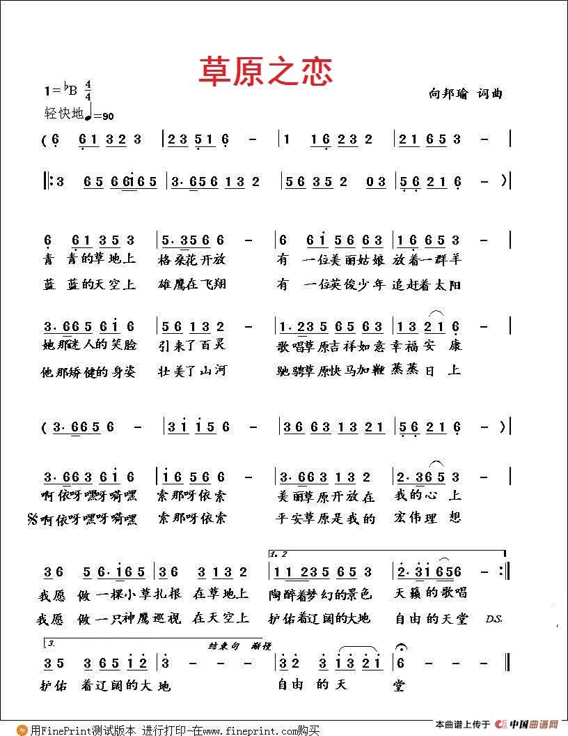 提示:在曲谱图片上单击右键,选择"图片另存为..."即可将曲谱保存到您的电脑中,打印时候可将图片插入到WORD中,调整合适大小打印即可。