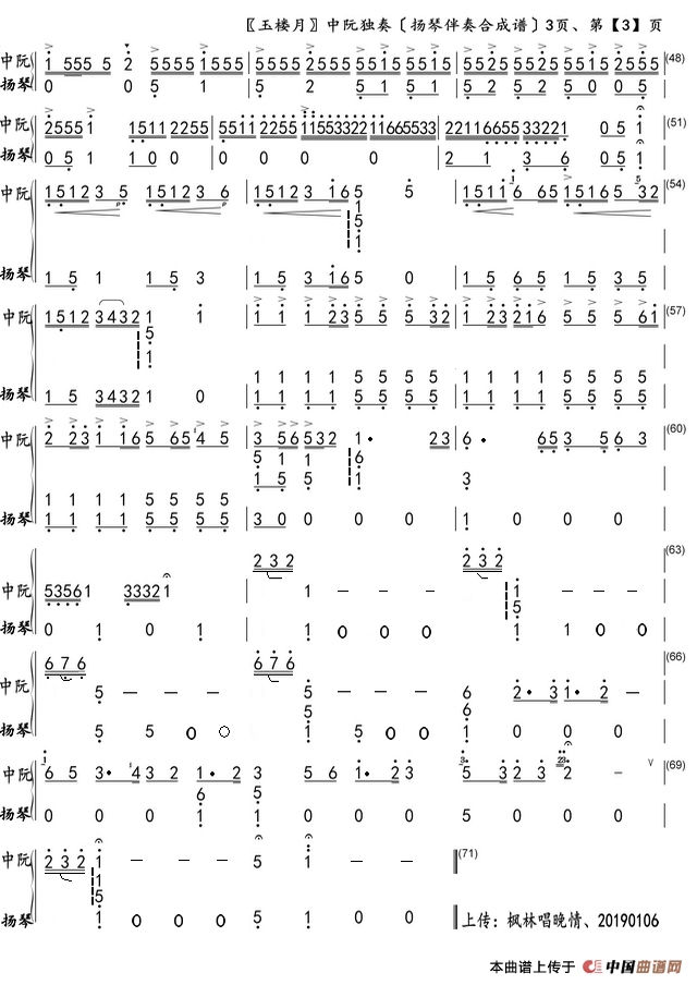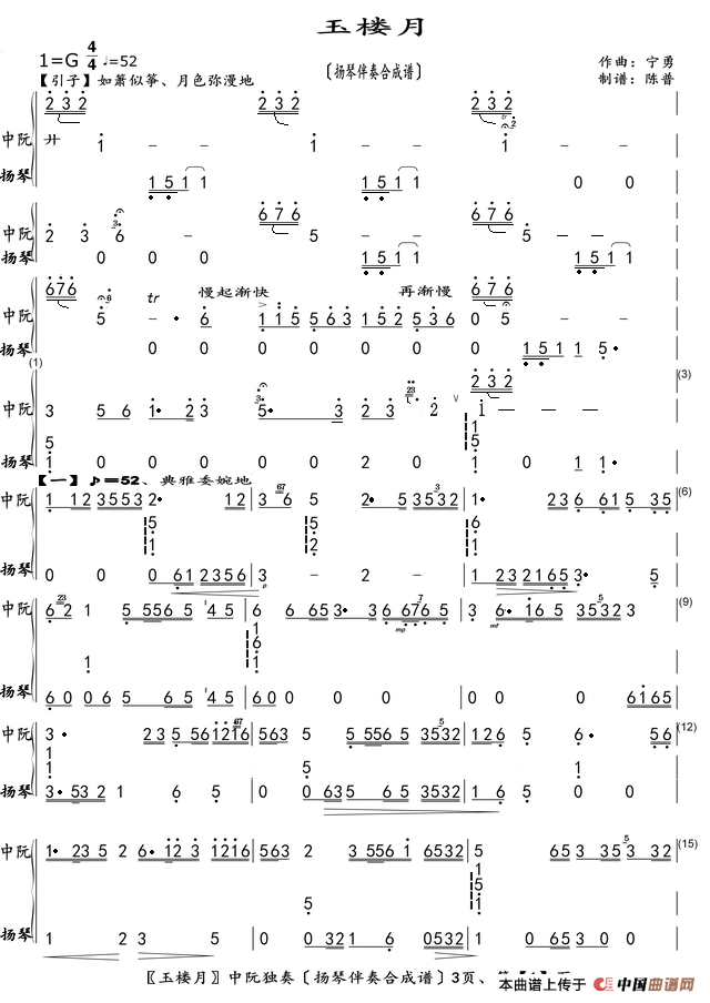 玉楼月(扬琴伴奏合成谱)