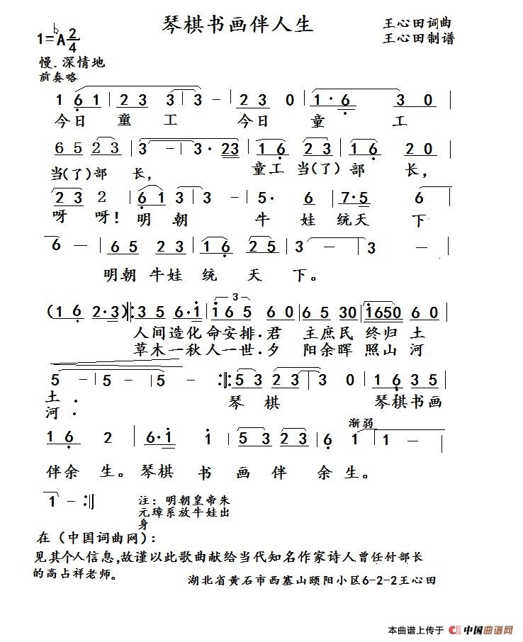 作词:王心田   作曲:王心田   来源:谱友捕鱼人QQ上传   上传:捕鱼人QQ   日期:2019-01-12   浏览次数: