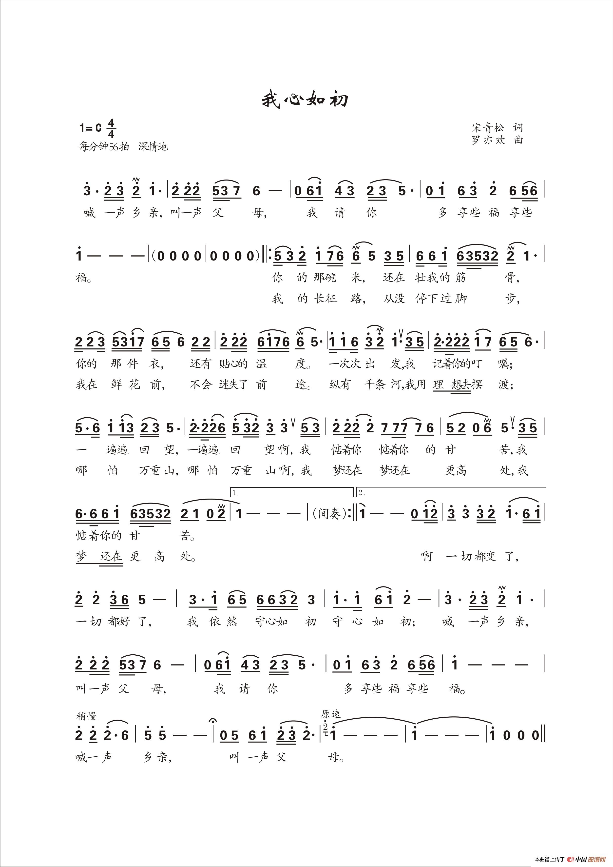关于《我心如初》曲谱的评论