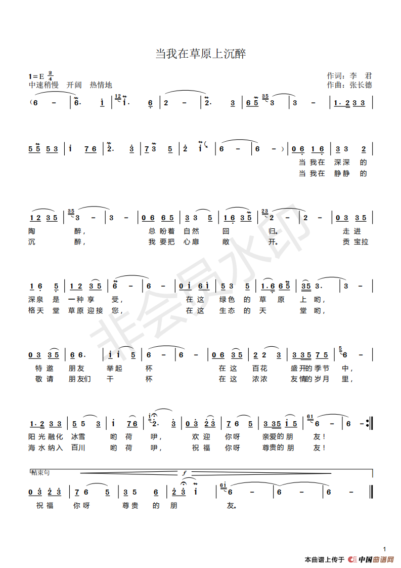 关于《当我在草原上沉醉》曲谱的评论
