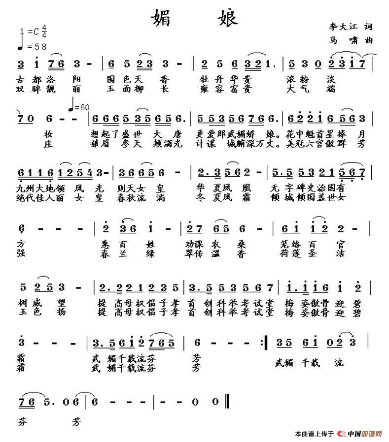 关于《媚娘》曲谱的评论