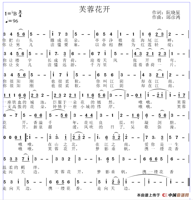 关于《芙蓉花开》曲谱的评论