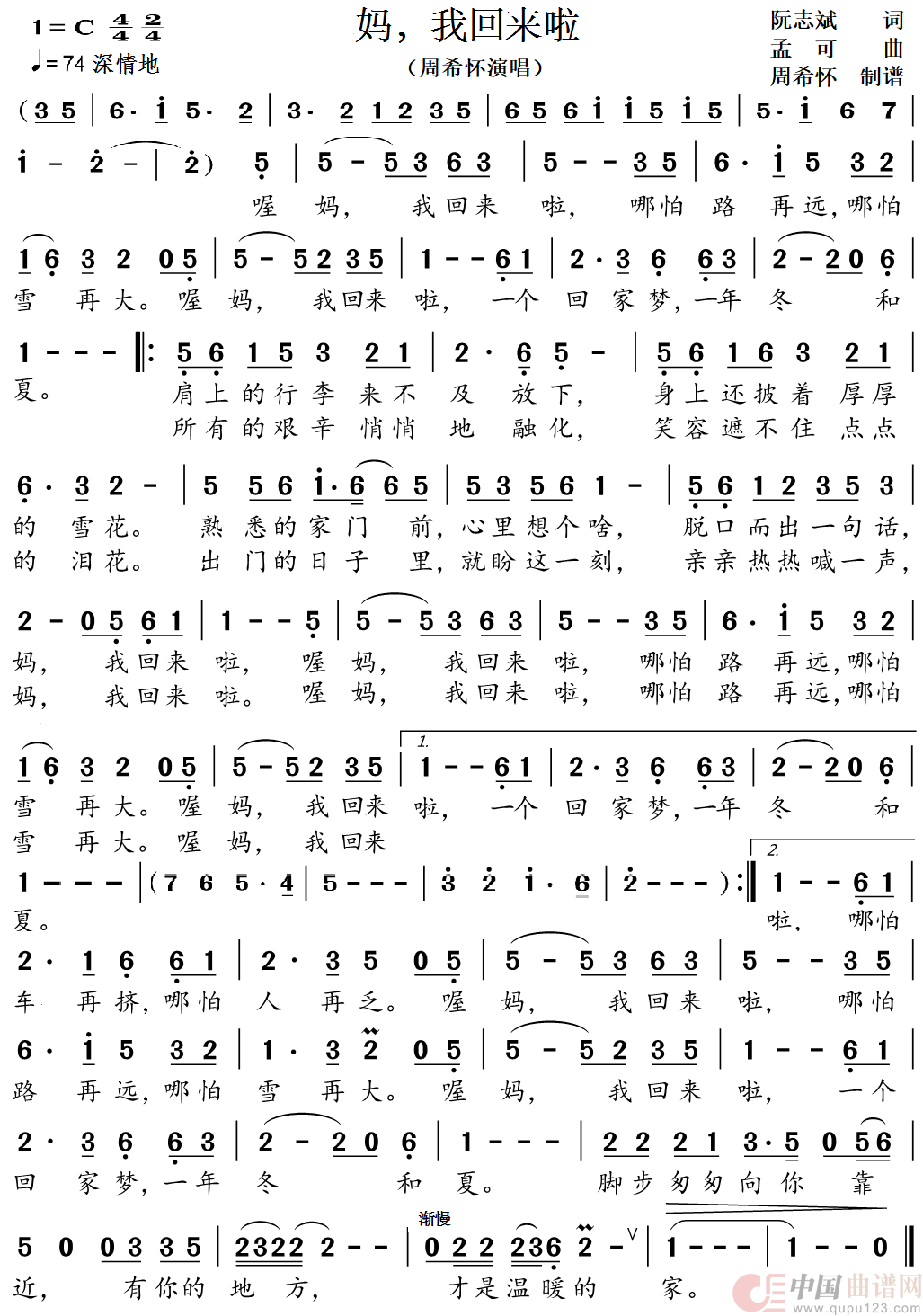 《妈,我回来啦》文本歌词