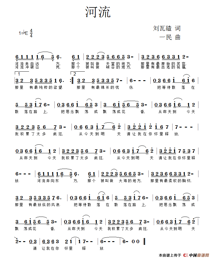 作词:刘瓦碴   作曲:一民   来源:谱友同一民上传   上传:同一民   日期:2019-02-27   浏览次数:
