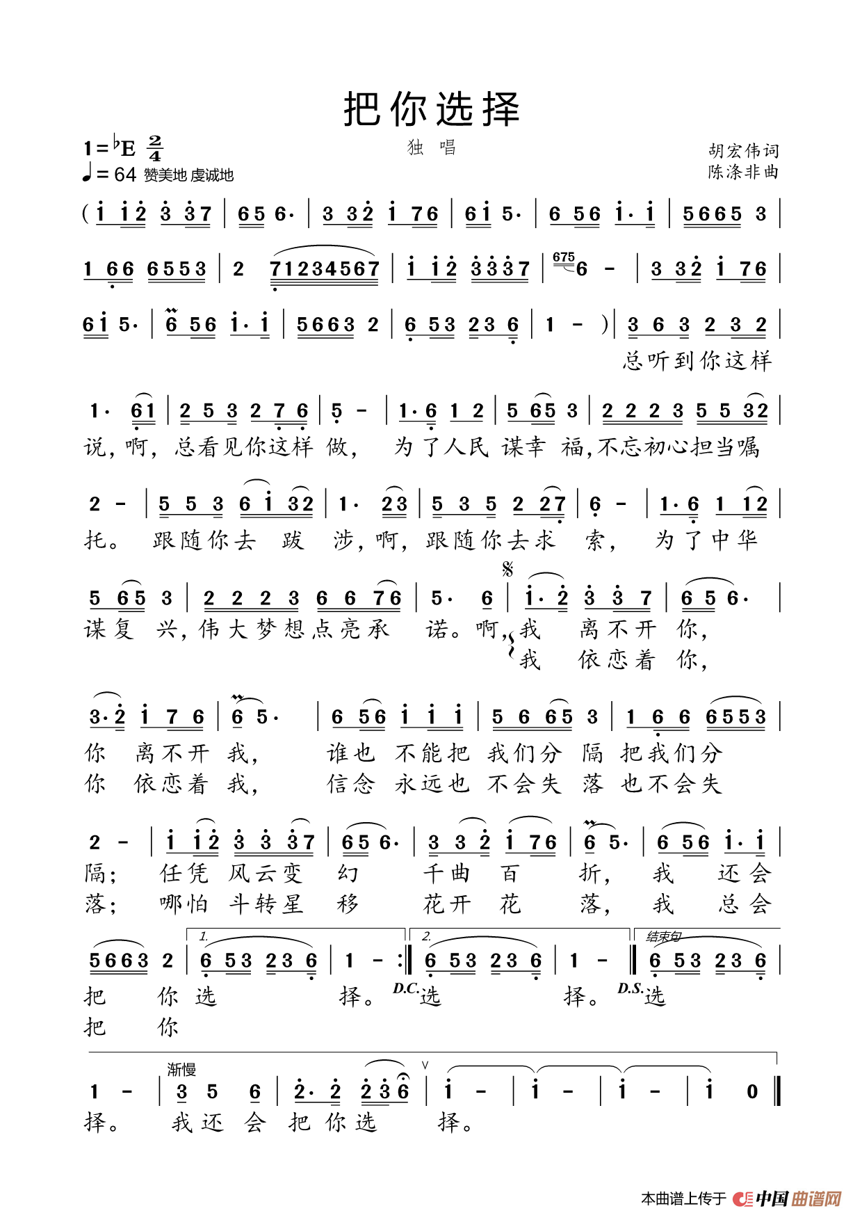 提示:在曲谱图片上单击右键,选择"图片另存为..."即可将曲谱保存到您的电脑中,打印时候可将图片插入到WORD中,调整合适大小打印即可。