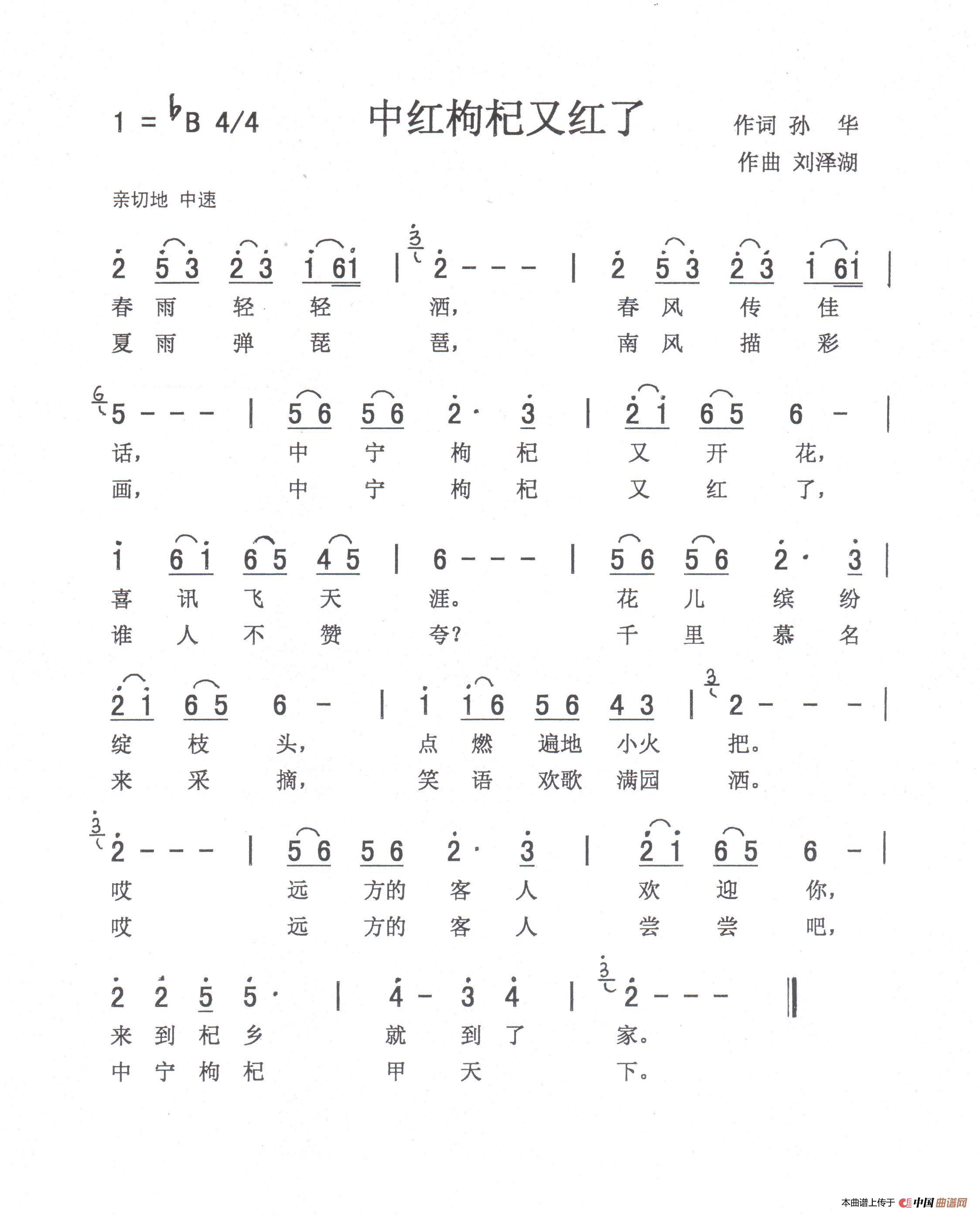 关于《中红枸杞又红了》曲谱的评论