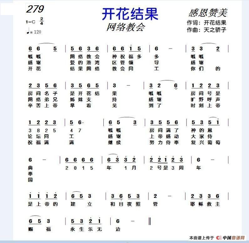 《279 开花结果》文本歌词