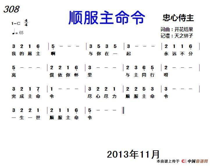 提示:在曲谱图片上单击右键,选择"图片另存为..."即可将曲谱保存到您的电脑中,打印时候可将图片插入到WORD中,调整合适大小打印即可。