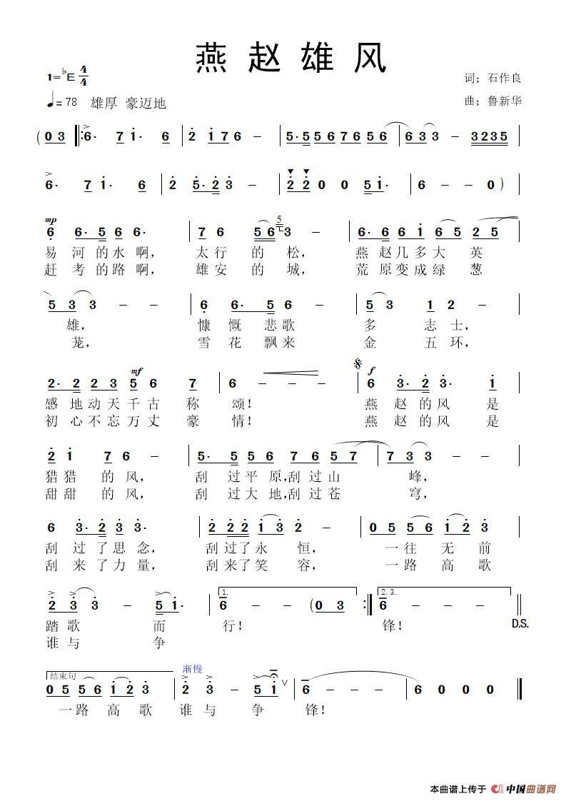 关于《燕赵雄风》曲谱的评论