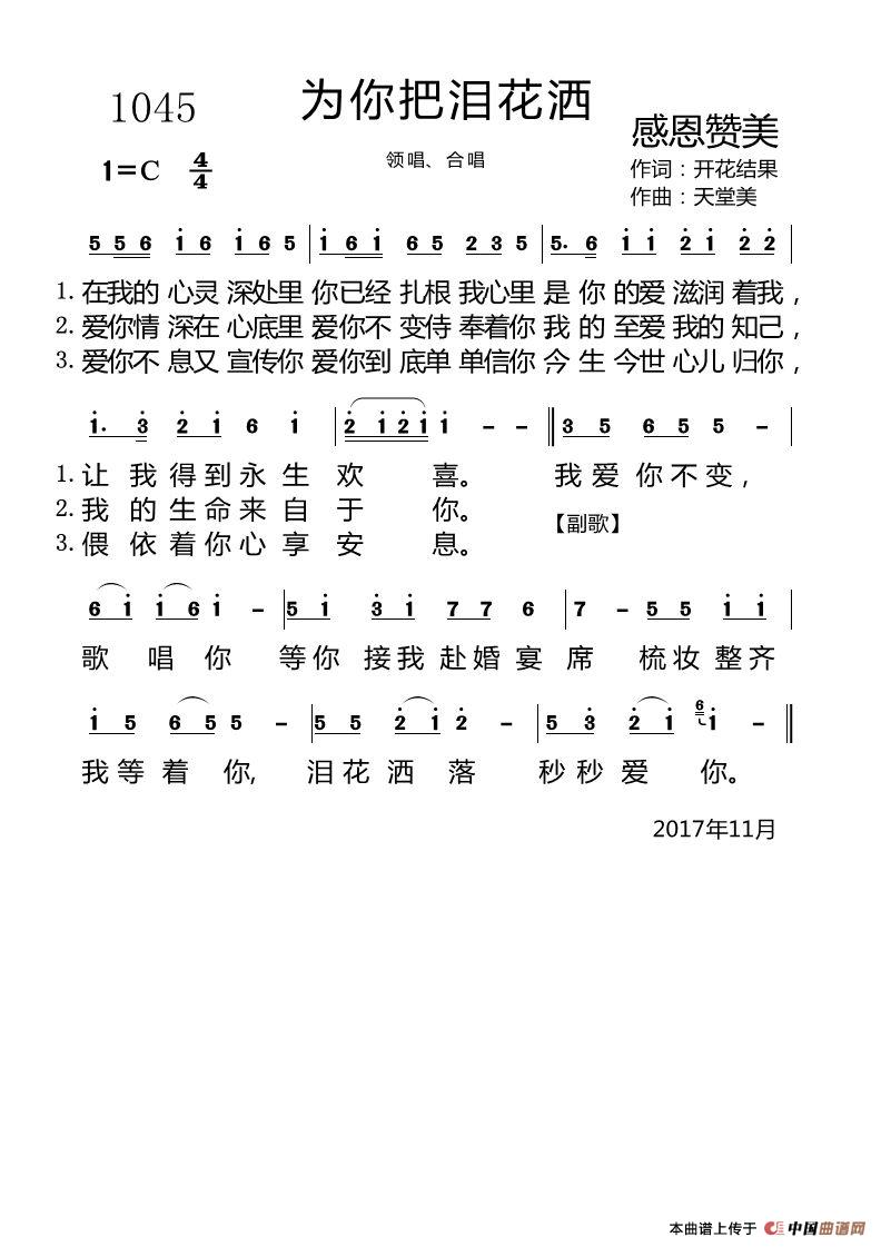 《1045 为你把泪花洒》文本歌词
