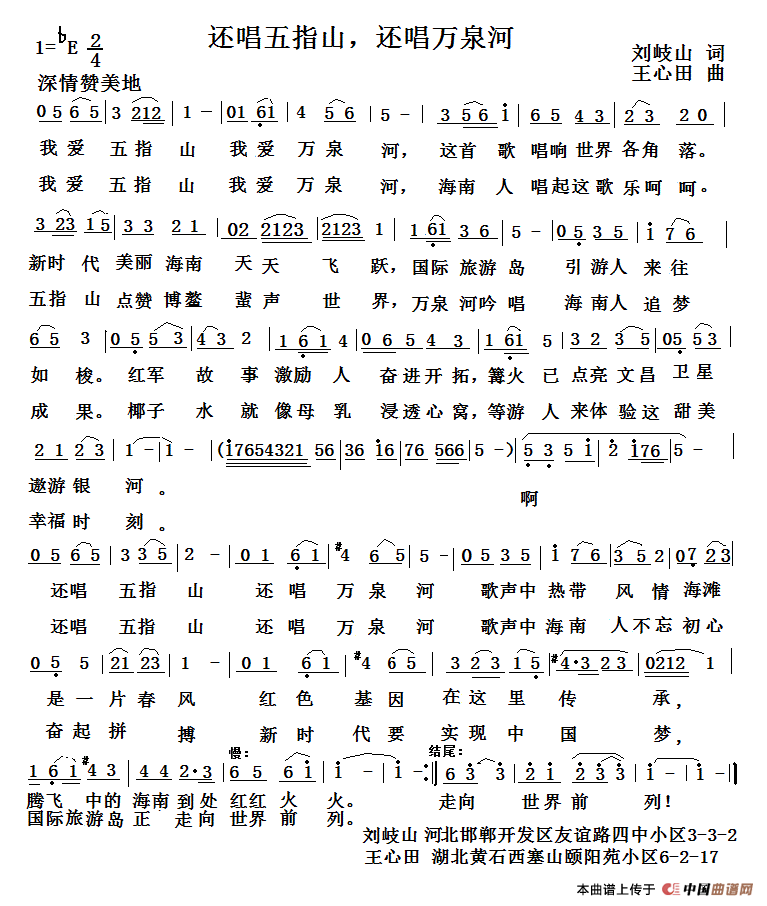 关于《还唱五指山,还唱万泉河》曲谱的评论