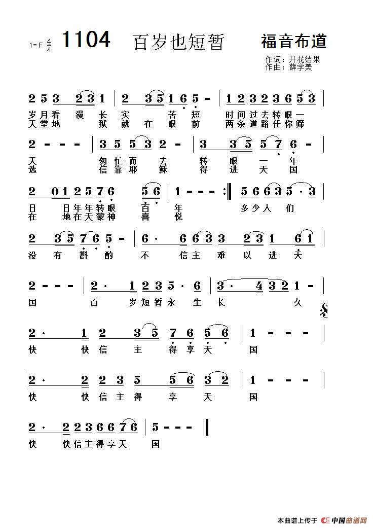 《1104 百岁也短暂》文本歌词