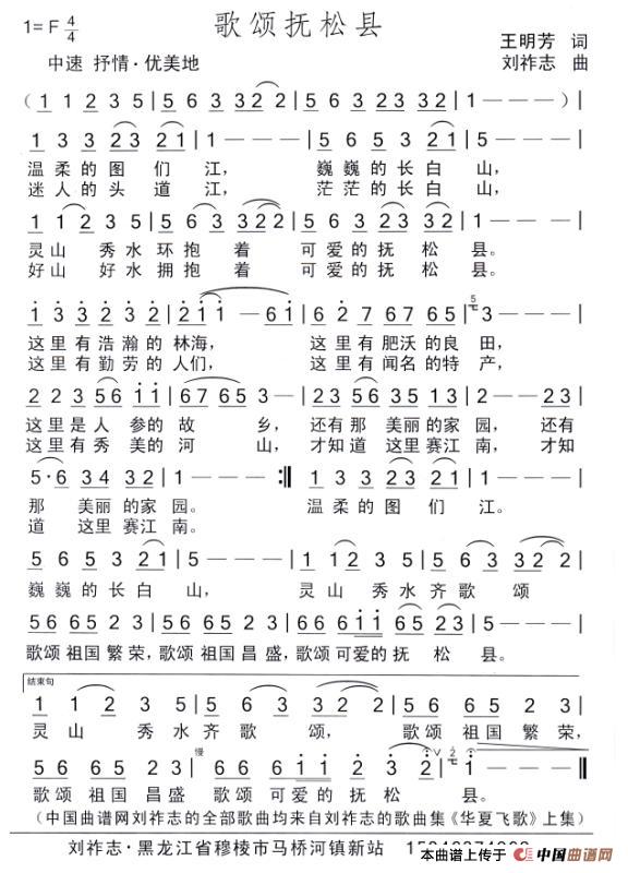 歌颂抚松县(王明芳词 刘祚志曲)(1)_原文件名:歌颂抚松县.jpg