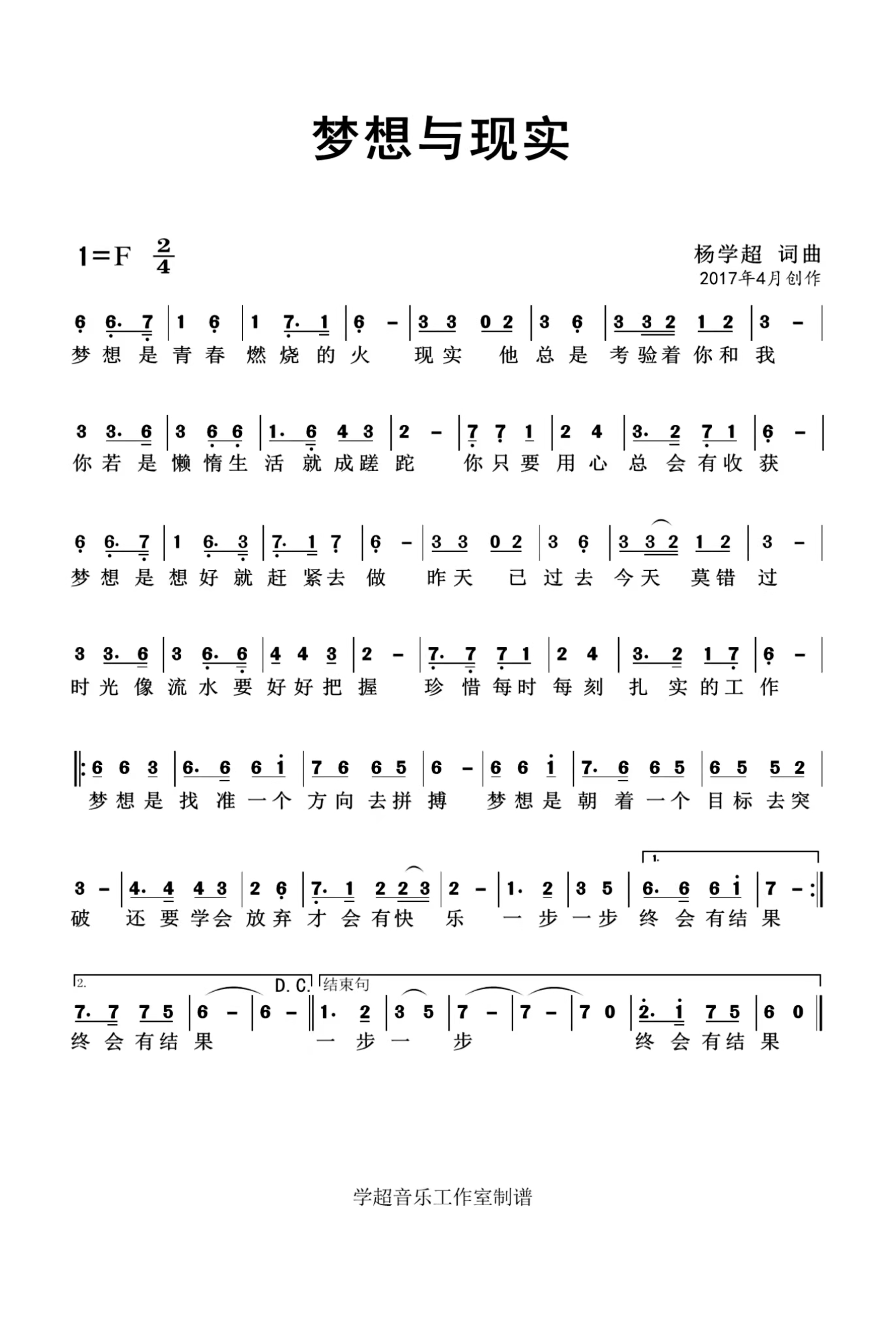 关于《梦想与现实(杨学超 词曲)》曲谱的评论