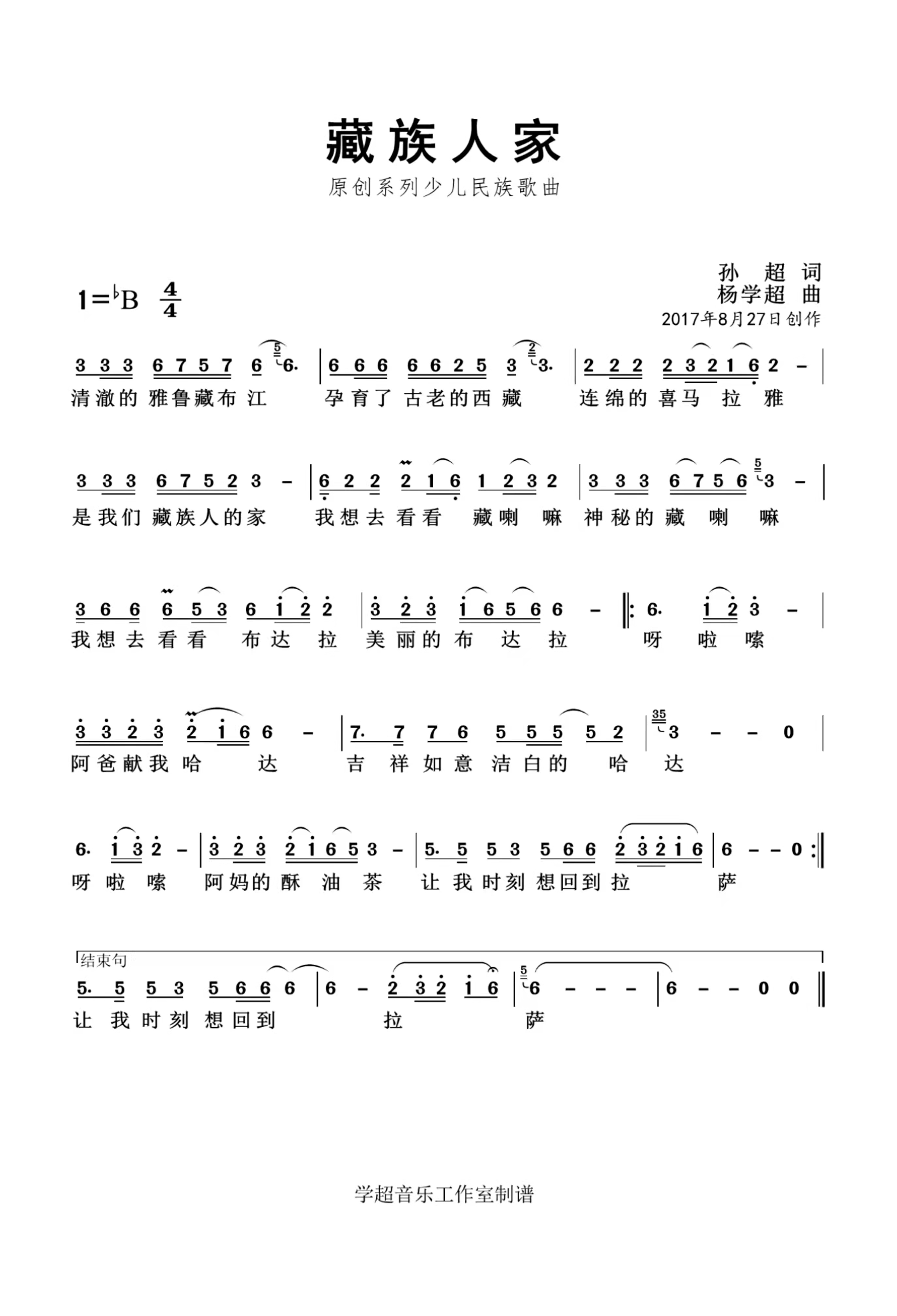 关于《藏族人家(孙超 词 杨学超 曲)》曲谱的评论