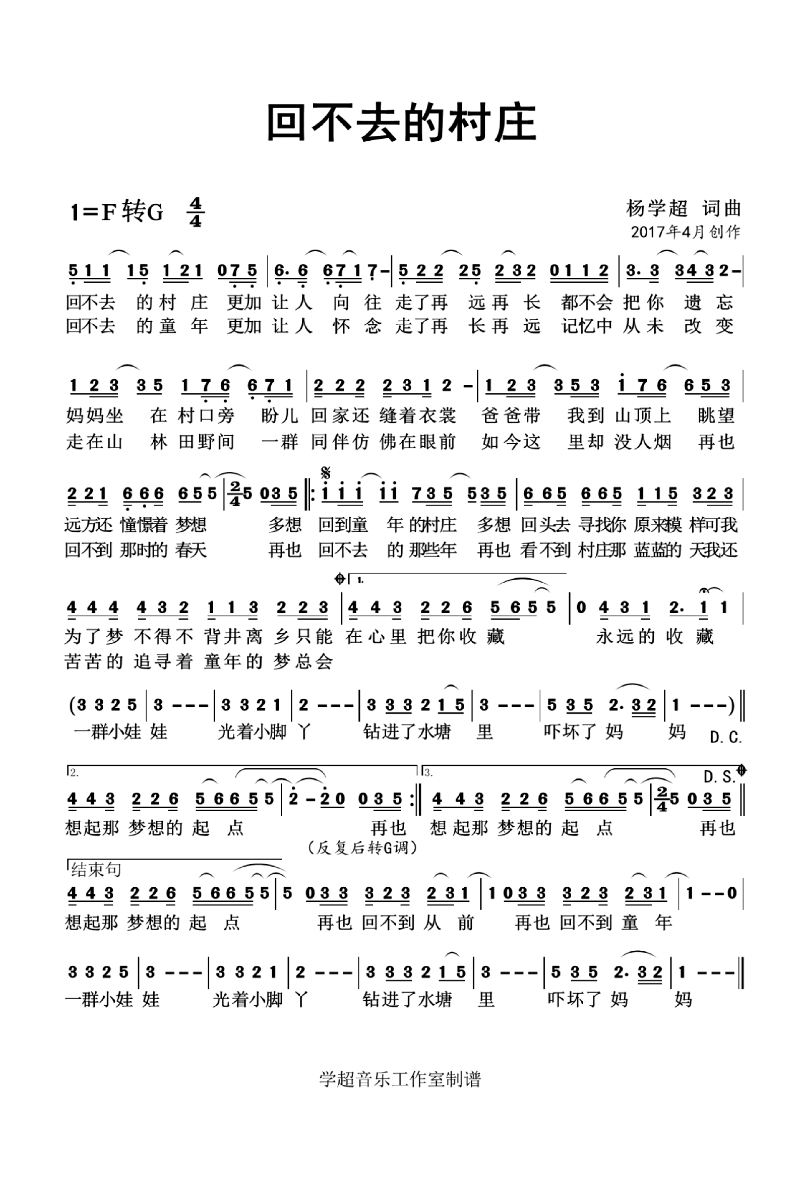 关于《回不去的村庄(杨学超 词曲)》曲谱的评论