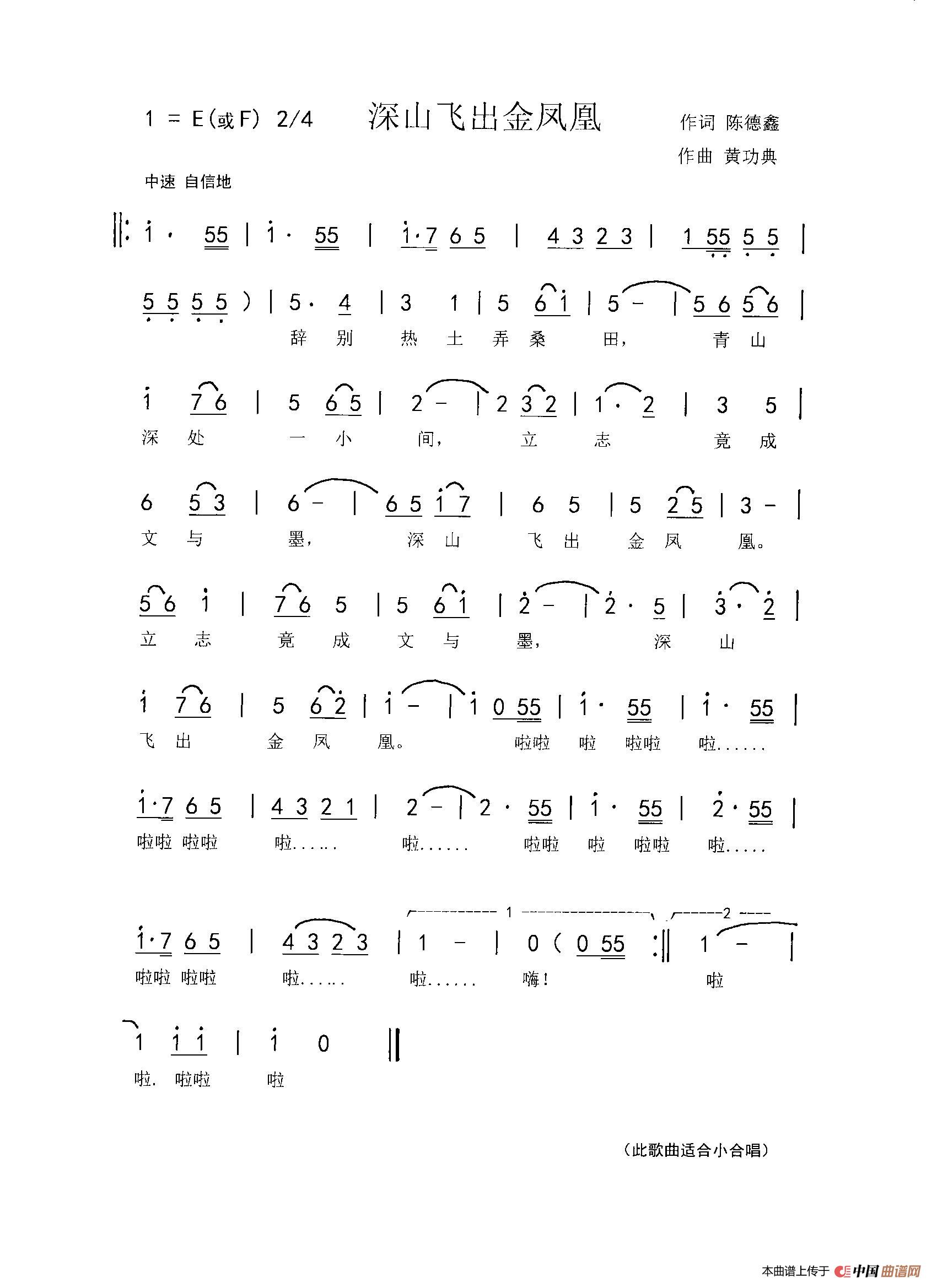 深山飞出金凤凰(陈德鑫词 黄功典曲)