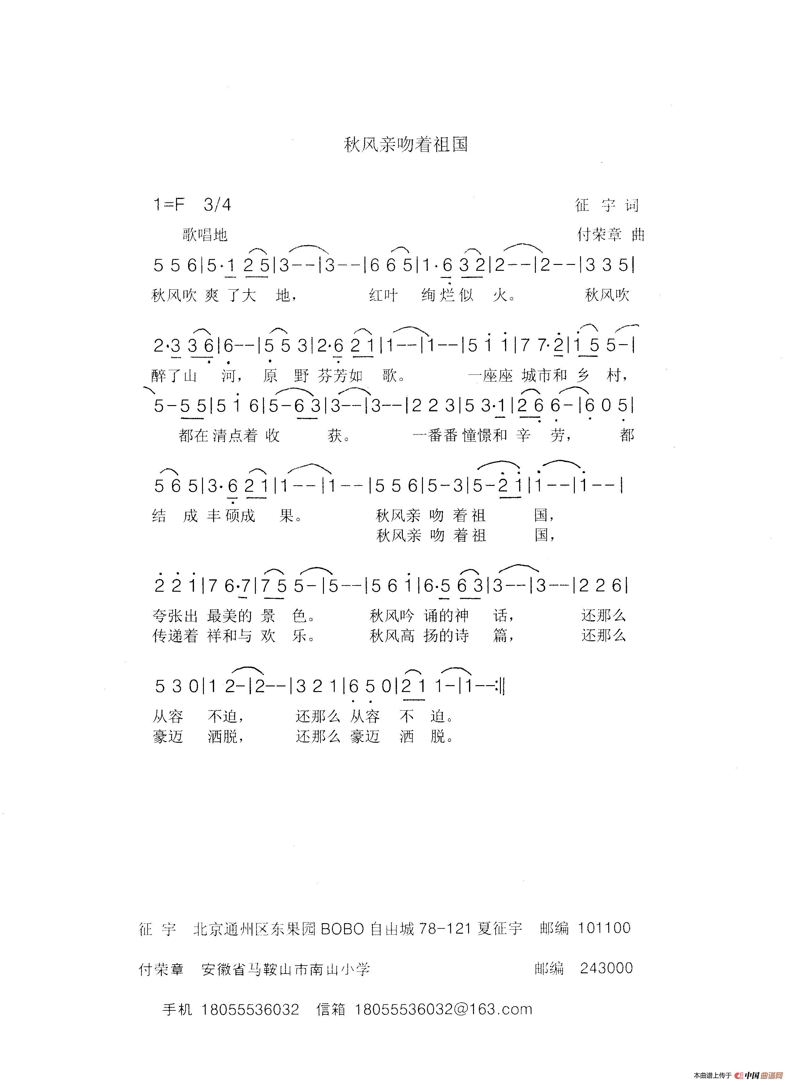 关于《《秋风亲吻着祖国》》曲谱的评论