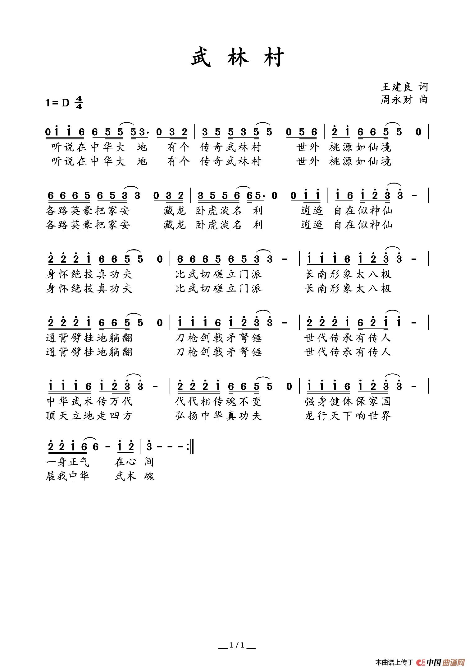 关于《武林村》曲谱的评论