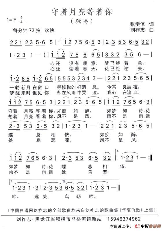 守着月亮等着你(张雯惊词 刘祚志曲)