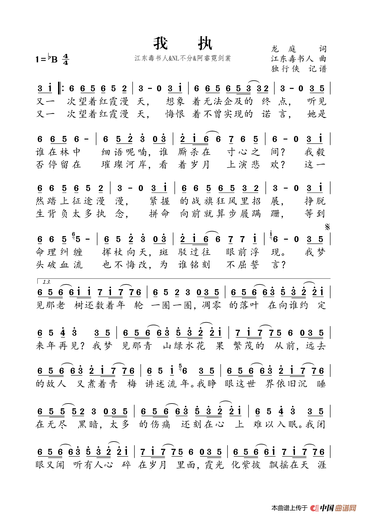 关于《我执》曲谱的评论