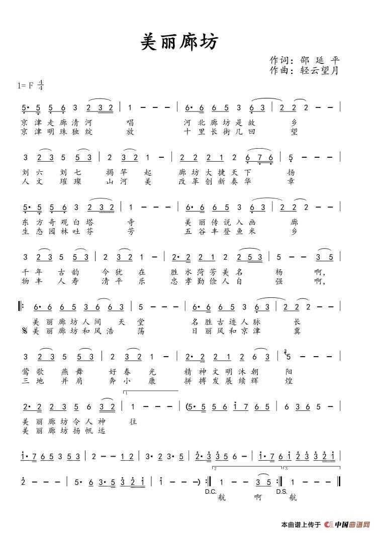 关于《美丽廊坊》曲谱的评论